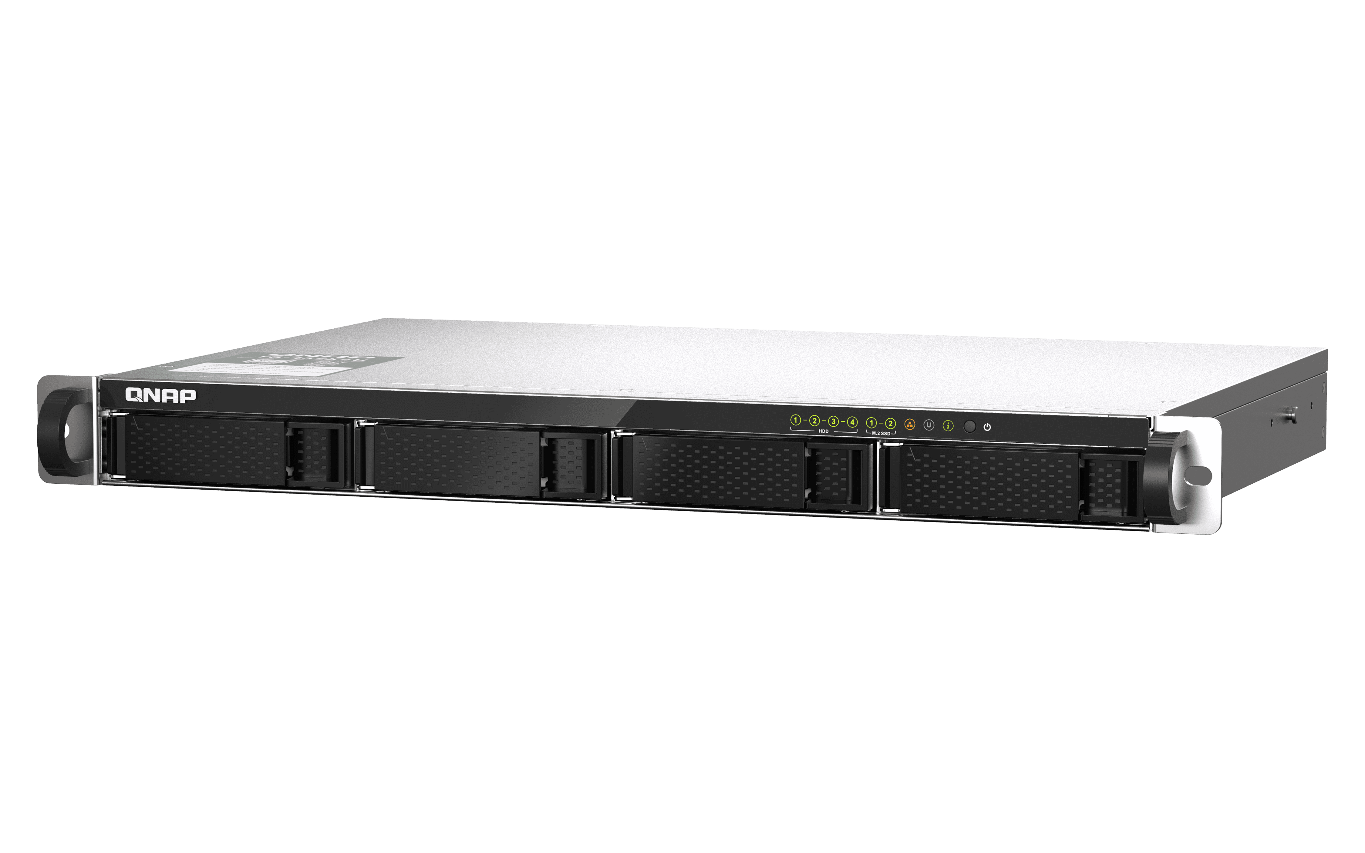 El compacto y completo modelo TS-435XeU ofrece una solución NAS de cuatro núcleos de clase profesional en un formato de montaje en rack de poca profundidad. El SFP+ de 10GbE nativo y la conectividad de 2,5GbE, junto con las ranuras SSD NVMe M.2 que permiten la aceleración de la caché, permite a las empresas responder con eficiencia a tareas diarias como la copia de seguridad y restauración de archivos, así como a potenciar la colaboración en equipo con una mayor productividad. El diseño compacto y de poca profundidad facilita la instalación del TS-435XeU en armarios multimedia pequeños o en lugares con una gran cantidad de cableado. Gracias a la compatibilidad con abundantes aplicaciones empresariales (incluyendo el intercambio y la sincronización de archivos, la protección mediante instantáneas, la contenerización, las pasarelas de almacenamiento en la nube y la transmisión de vídeo), a la capacidad de almacenamiento ampliable y a las aplicaciones de instalación bajo demanda, el TS-435XeU es un perfecto NAS de montaje en rack básico y asequible.