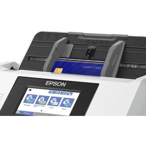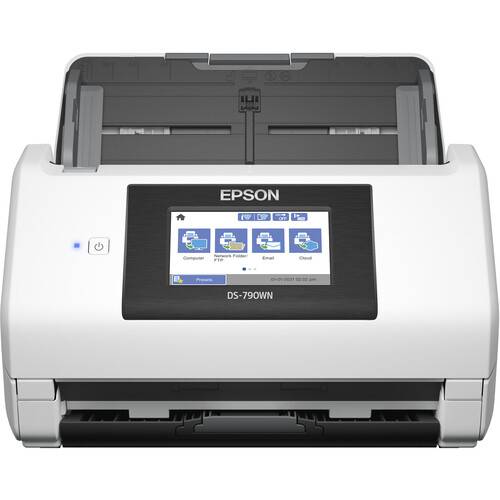 El Epson DS-790WN está diseñado como un escáner de documentos inalámbrico rápido y seguro con red integrada y una gran pantalla táctil para escanear sin computadora. Ofrece escaneos de alta calidad de hasta 45 ppm/90 ipm con un ciclo de trabajo diario máximo de hasta 7000 hojas. El escáner ofrece escaneo dúplex de una sola pasada y un ADF de gran volumen de 100 páginas que admite tarjetas comerciales y de identificación, así como páginas extra largas de hasta 240″. La intuitiva pantalla táctil LCD a color de 4.3″ le permite acceder a múltiples trabajos y correos electrónicos o escanee a una unidad USB, su red o servicios de almacenamiento en la nube sin necesidad de una computadora. Obtenga el control total de sus documentos con la autenticación de usuario individual a través de la pantalla táctil o un lector de tarjetas opcional, que incluye configuraciones de escaneo personalizables y acceso a registros de uso personal.