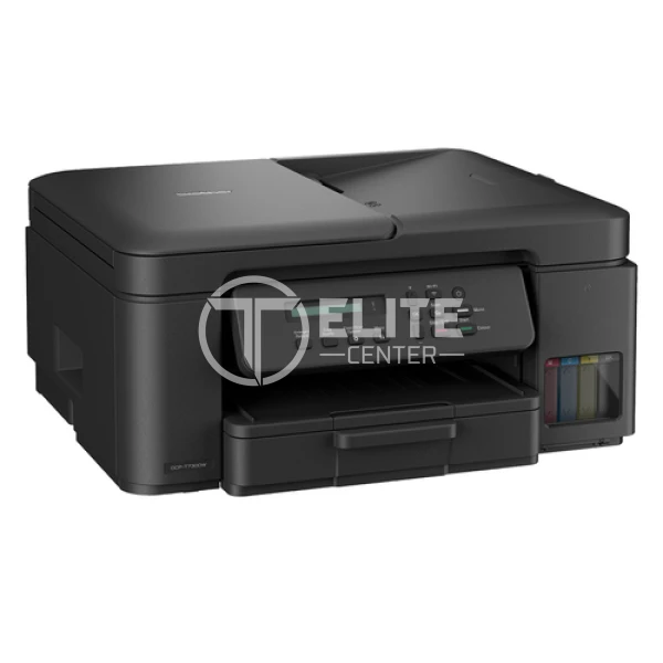 Brother DCP-T730DW. Tecnología de impresión: Inyección de tinta, Impresión: Impresión a color, Resolución máxima: 6000 x 1200 DPI, Velocidad de impresión (color, calidad normal, A4/US Carta): 23 ppm. Copiando: Copia a color, Resolución máxima de copia: 1200 x 2400 DPI. Escaneando: Escaneo a color, Resolución óptica de escáner: 2400 x 1200 DPI. Funciones dúplex: Imprimir. Tamaño máximo de papel ISO A-series: A4. Wifi. Impresión directa. Color del producto: Negro