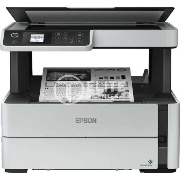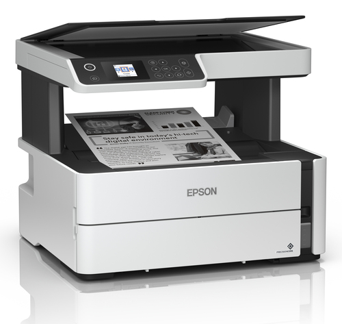 Epson EcoTank ET-M2170. Tecnología de impresión: Inyección de tinta, Impresión: Impresión en blanco y negro, Resolución máxima: 1200 x 2400 DPI. Copiando: Copias en blanco y negro, Resolución máxima de copia: 1200 x 1200 DPI. Escaneando: Escaneo a color, Resolución óptica de escáner: 1200 x 2400 DPI. Funciones dúplex: Imprimir. Tamaño máximo de papel ISO A-series: A4. Wifi. Impresión directa. Color del producto: Negro, Gris, Blanco