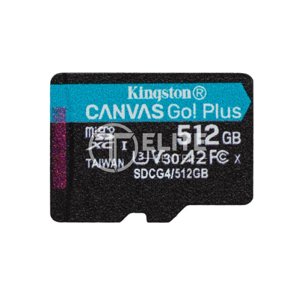 Kingston Technology Tarjeta microSDXC Canvas Go Plus Gen4 de 512 GB, 200 MB/s, A2 U3 V30 y adaptador