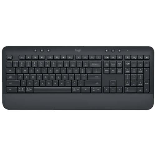 SIGNATURE K650 se adapta perfectamente a tus necesidades diarias en el trabajo con accesos directos mejorados y reposamanos integrado. Obtén el confort que necesitas por largas horas en tu escritorio. Con un diseño resistente a salpicaduras*, fácil de limpiar y hasta 36 meses de duración de las baterías**, puedes moverlo de forma cómoda y sencilla sin cables que estorben.