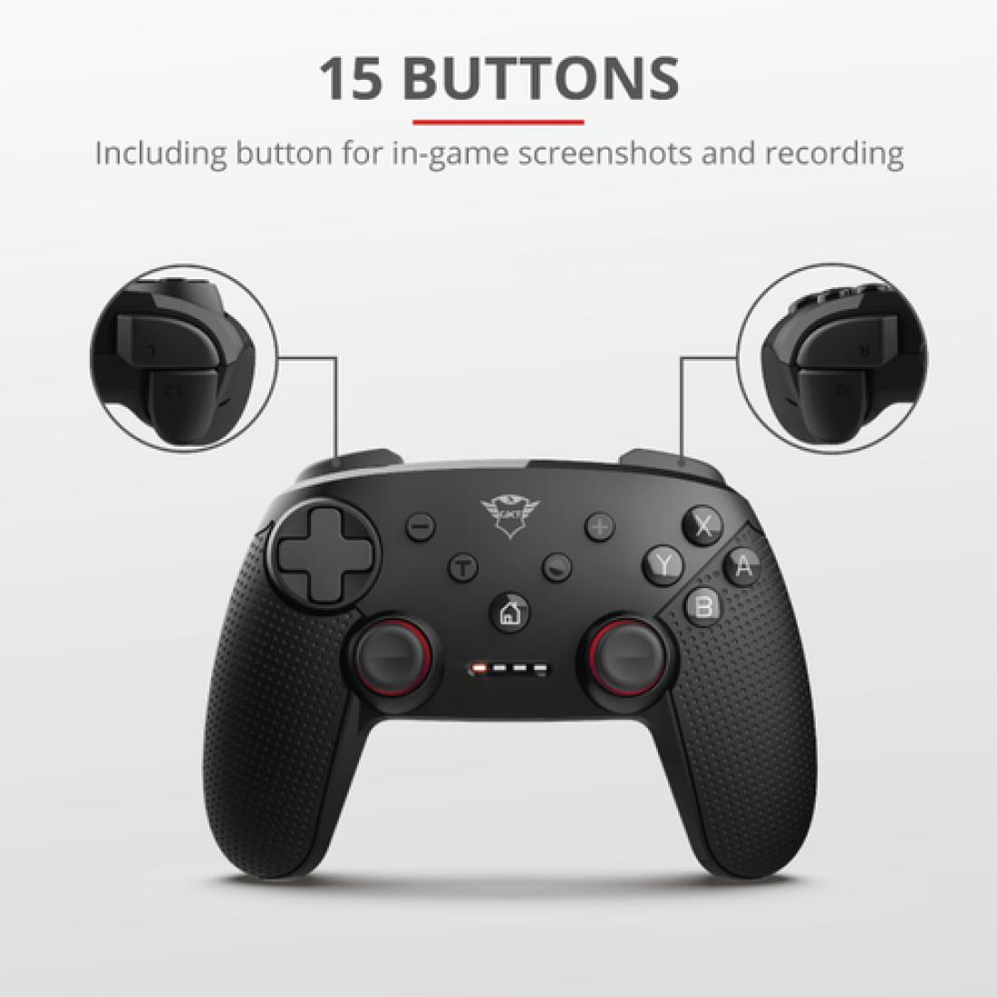 Disfruta de un control total de tus juegos en Windows y Nintendo Switch con el mando para juegos inalámbrico Trust GXT 1230 Muta. Gracias a los controles de movimiento, la respuesta de vibración y la larga duración de la batería, este mando te permitirá jugar durante horas.